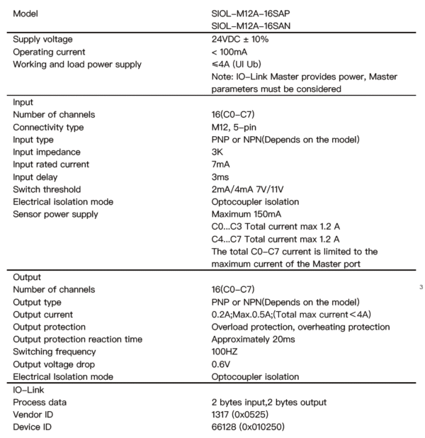 SIOL-M12A-16SAP(16xPNP Input or 16xPNP Output)