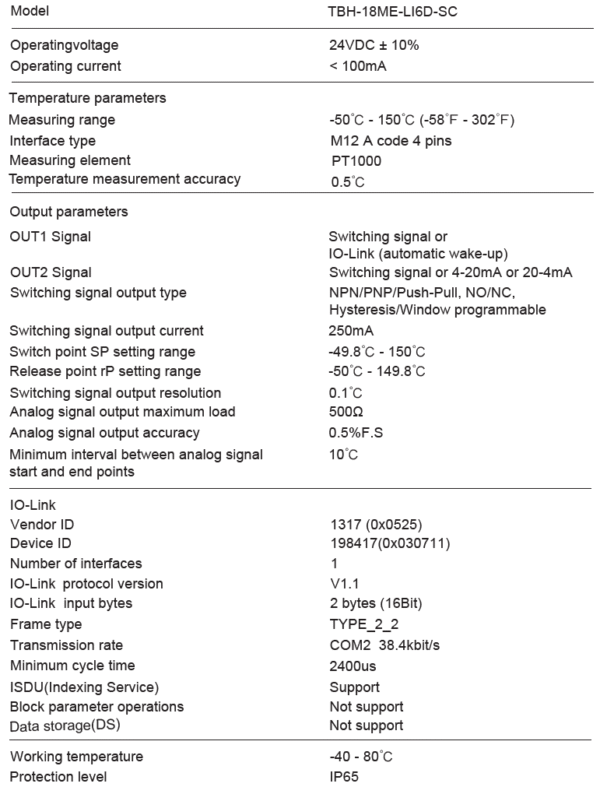 TBH is an IO-Link smart temperature sensor designed for accurate temperature monitoring in industrial applications. It features a 4-digit large digital display with a mirrored, semi-transparent design, providing clear and easy-to-read temperature values. The integrated molded display panel ensures a compact and robust structure.