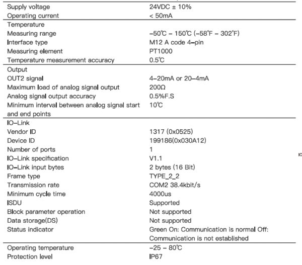 Equipped with an M12 A-coded 4-pin electrical interface, the device offers stable signal transmission and easy integration into automation systems. The probe length can be customized to meet different application requirements, making the transmitter suitable for a wide range of industrial temperature monitoring tasks.