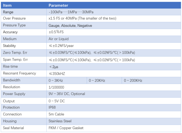 Der wassergekühlte Hochtemperatur-Hochfrequenz-Dynamikdrucksensor GP-6112 verfügt über eine wassergekühlte Struktur und eine druckempfindliche Membran mit einem nahezu bündigen Gehäusedesign, das eine hohe Temperaturbeständigkeit und Frequenzantwort bietet. Diese Serie von Drucksensoren und -transmittern wurde entwickelt, um die spezifischen Anforderungen der Anwender hinsichtlich Ansprechfrequenz und hohen Betriebstemperaturen zu erfüllen. Um diesen vielfältigen Anforderungen gerecht zu werden, verfügt der Transmitter über eine geteilte Gehäusestruktur.