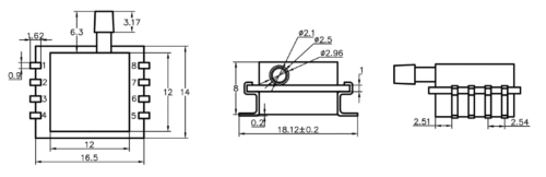 XGZP193 is a surface mounting pressure sensor based on CFSensor silicon piezoresistive pressure sensor die. The sensor die is bonded on a substrate with a plastic cap and packaged in a 8-pin SIP housing.