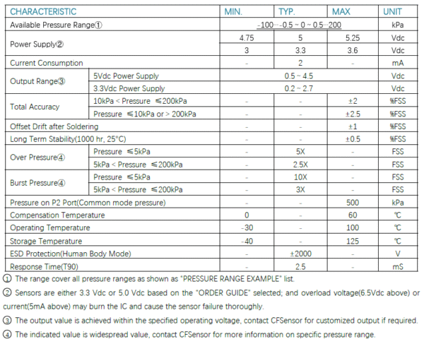 Customized calibrations(working voltage,output voltage,and pressure range) are available. If measured media is rather than the dry non-corrosive gas or air, contact CFSensor for solution.