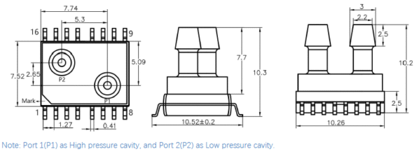XGZP6891D is a perfect silicon pressure sensor offering a ratiometric digital data(I2C interface) for reading differential pressure over the specified full scale pressure span. The XGZP6891D incorporates a silicon piezoresistive pressure sensor chip and an interior signalconditional Application Specific Integrated Circuit(ASIC) in a SOIC-16 package with two air vents, which can be mounted directly on a standard PCB.