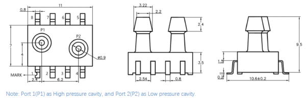 XGZP6897A is a prefect silicon pressure sensor offering a ratiometric analog interface for reading differential pressure over the specified full scale pressure span and temp.range. The XGZP6897A incorporates a silicon piezoresistive pressure sensor chip and an interior signal-conditional Application Specific Integrated Circuit(ASIC) in a SOP8 package with two air vents, which can be mounted directly on a standard PCB.