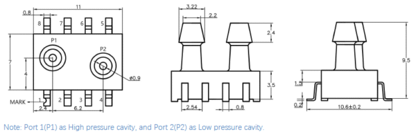 XGZP6897D is a prefect silicon pressure sensor offering a ratiometric digital data(I2C interface) for reading differential pressure over the specified full scale pressure span. The XGZP6897D incorporates a silicon piezoresistive pressure sensor chip and an interior signalconditional Application Specific Integrated Circuit(ASIC) in a SOP8 package with two air vents, which can be mounted directly on a standard PCB.