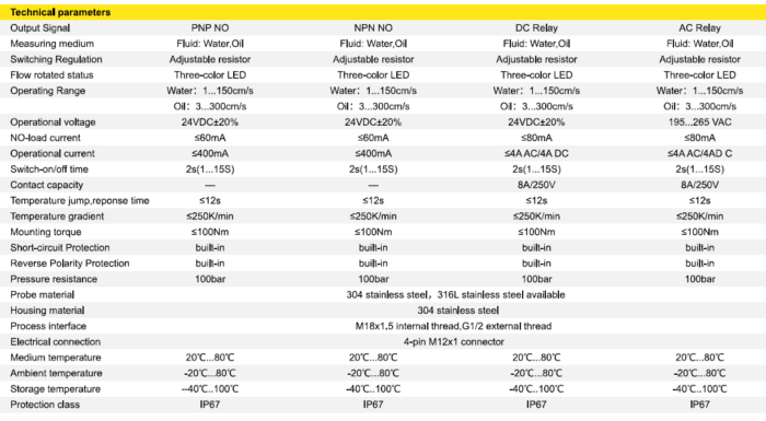 Auf Basis des thermischen Messprinzips erkennt der Sensor den Durchfluss durch Messung der Wärmeübertragung im Medium. Er eignet sich zur zuverlässigen Überwachung von Wasser, Öl und anderen kompatiblen Flüssigkeiten in Rohrleitungssystemen.