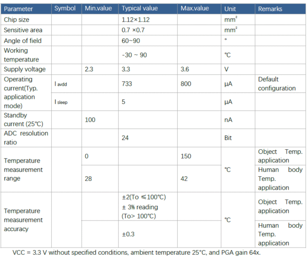 XGZT2613 is a high-precision digital infrared thermopile products used for a variety of non-contact temperature measurement. Application in medical&healthcare、consumer electronics、Industrial etc,. The sensor include MEMS thermopile sensor chip、NTC thermistor and specialized signal conditioning ASIC chip.